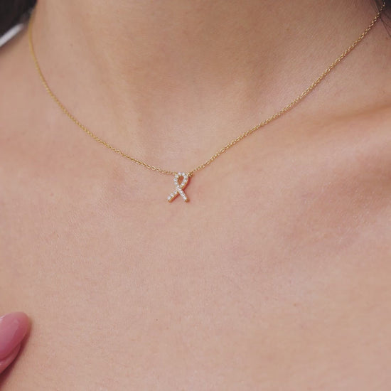 Elegant and meaningful, this 18k gold vermeil necklace features a ribbon-shaped pendant adorned with sparkling pavé-set stones.
