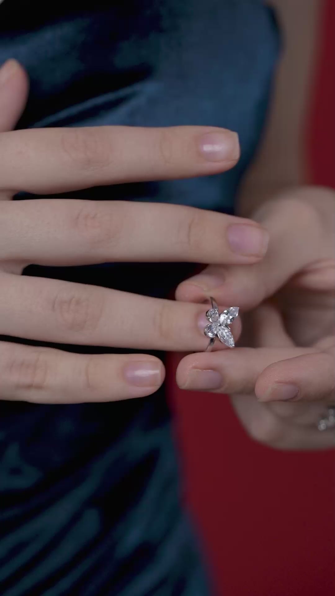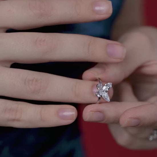 Gracefully enchanting, this 18K gold vermeil ring features a dazzling butterfly design crafted from marquise and pear-cut diamonds — a symbol of beauty, freedom, and transformation.