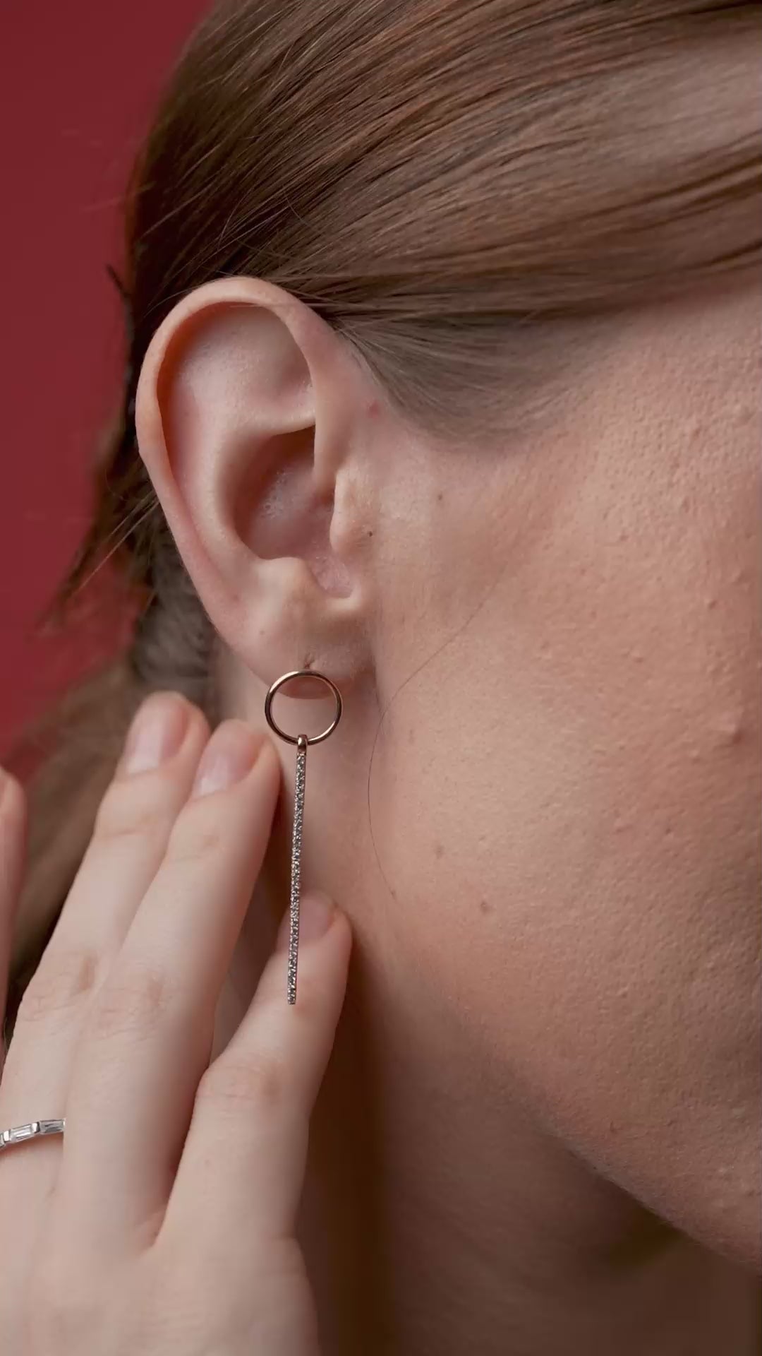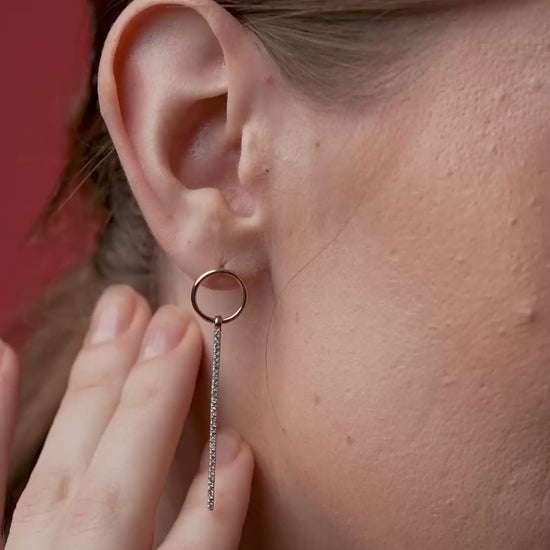 Elegant 18k Gold Vermeil drop earrings featuring a minimalist circle and a sleek, diamond-studded bar for a refined and modern touch.