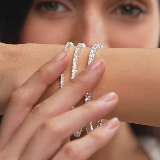 Wrap your wrist in the warm, sophisticated glow of this timeless accessory. Featuring a continuous line of petite round-cut crystals, this bracelet balances delicate design with dazzling brilliance. Crafted in 18K gold vermeil on 925 sterling silver, it is anti-tarnish and hypoallergenic, ensuring a luxurious and comfortable experience for daily wear. Whether you wear it as a subtle solo statement or stack it with other favourites for a bolder look, this lightweight classic is an essential addition to every modern woman's collection.