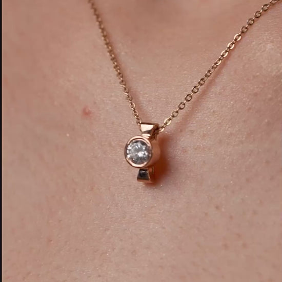 18k Gold Vermeil pendant necklace featuring a bezel-set round diamond in a sleek and modern design.