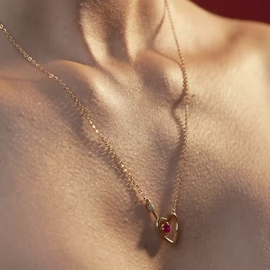 Celebrate love with a design that strikes the perfect balance between playful and elegant. This romantic necklace features a golden open heart motif pierced by a shimmering crystal-studded arrow, ending in a vibrant pink heart-shaped stone. Crafted in 18K gold vermeil on 925 sterling silver, it is anti-tarnish and hypoallergenic, ensuring it stays gentle on sensitive skin even during everyday wear. Whether you are looking for a charming accessory for a coffee date or a meaningful gift for someone special, this lightweight piece adds a sweet, modern touch to any look.