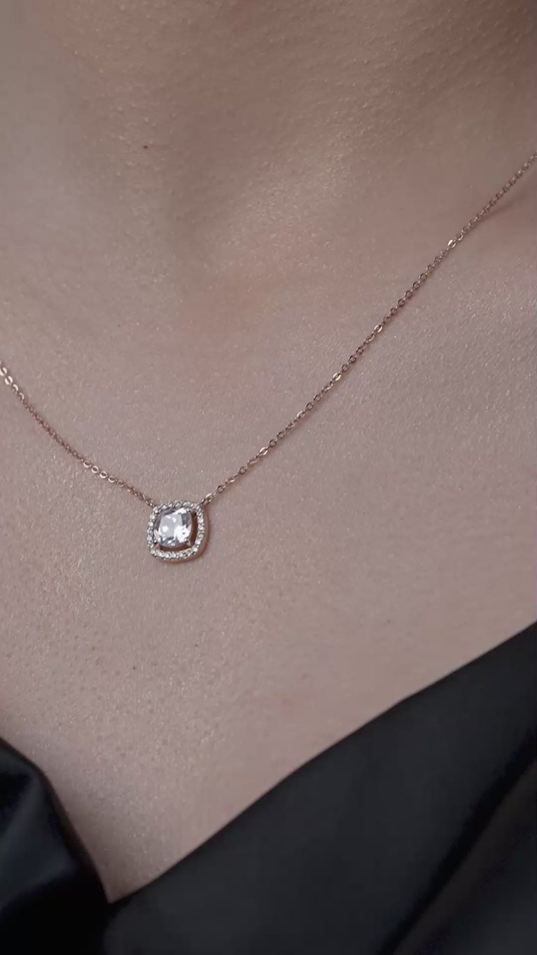 Combine soft curves with structured elegance for a look that commands attention. This sophisticated necklace features a brilliant round crystal centered within a sparkling square halo, creating a luxurious cushion-cut effect that feels both modern and timeless. Crafted in 18K gold vermeil on 925 sterling silver, it is anti-tarnish and hypoallergenic, ensuring it remains gentle on sensitive skin throughout your busy day. Whether you are accessorising a formal blazer for a presentation or a simple kurta for a family lunch, this lightweight piece adds a refined polish to the modern Indian woman’s wardrobe.
