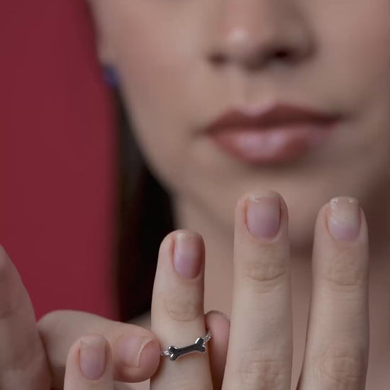 Celebrate the unconditional love of your furry best friend with this adorable ring, featuring a polished bone motif set on a slender band of sparkling stones. It is a sweet, whimsical reminder of your four-legged companion that looks chic enough for everyday styling, adding a playful touch to any outfit. Crafted in 18K gold vermeil on 925 sterling silver, this anti-tarnish and hypoallergenic piece is safe for sensitive skin, making it a perfect gift for dog moms or a treat for yourself. Whether stacked with other bands or worn alone, it brings a smile to your face every time you look at it.