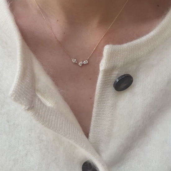 A minimalist 18K gold vermeil design adorned with three dazzling pear-cut stones, adding a sophisticated sparkle to any style.