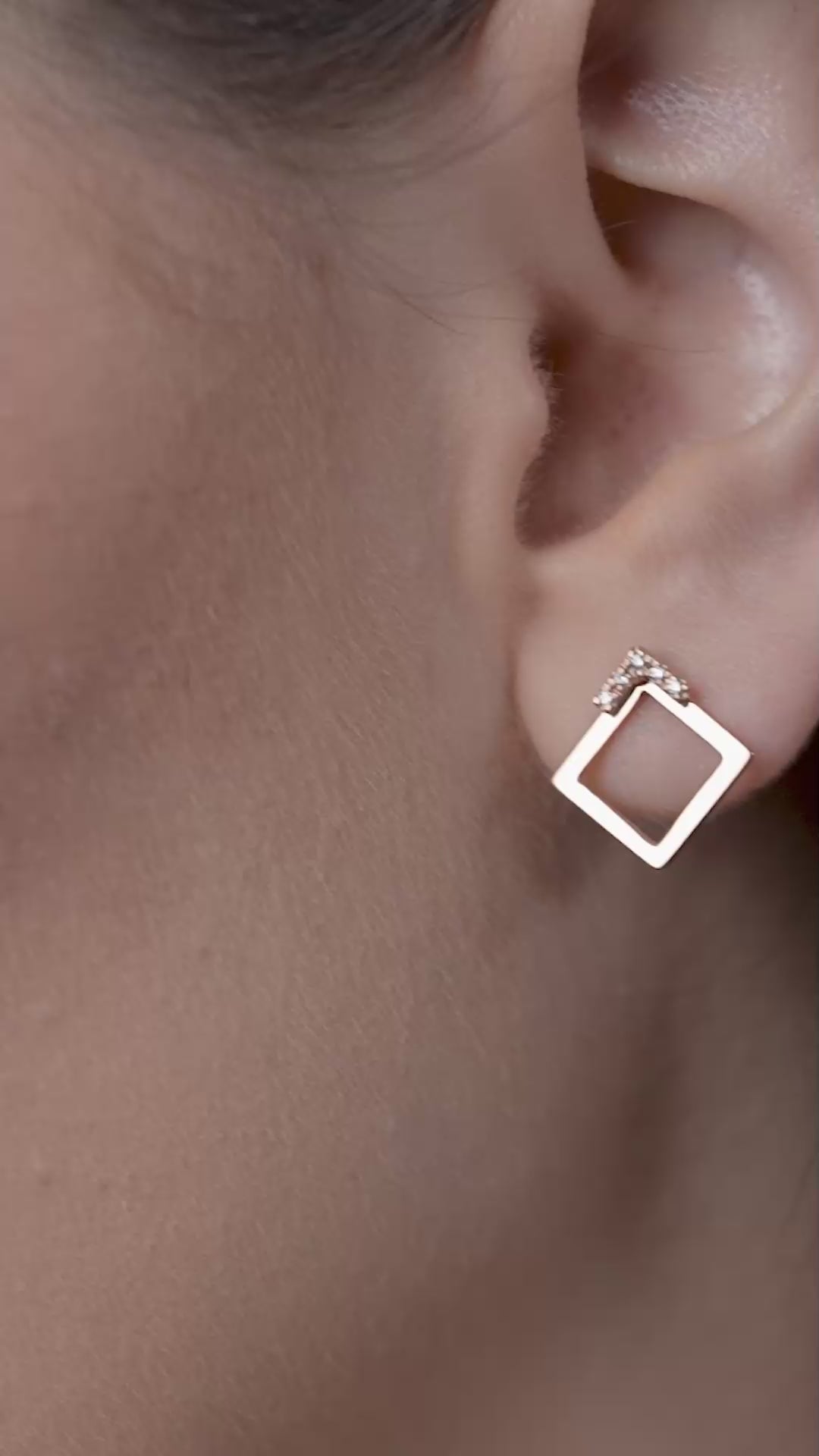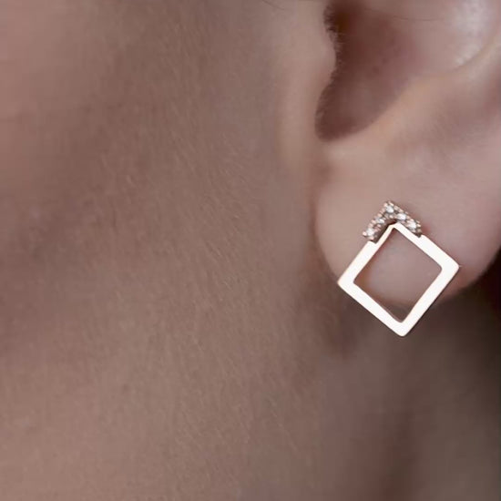Modern geometric earrings featuring an elegant diamond-shaped design with sparkling accents, perfect for a chic and sophisticated look.