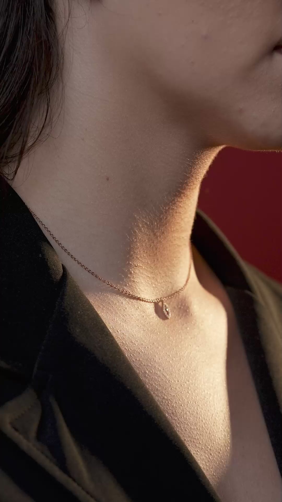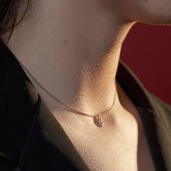 Sleek 18k gold vermeil necklace featuring an elegant marquise-shaped pendant outlined with sparkling cubic zirconia.