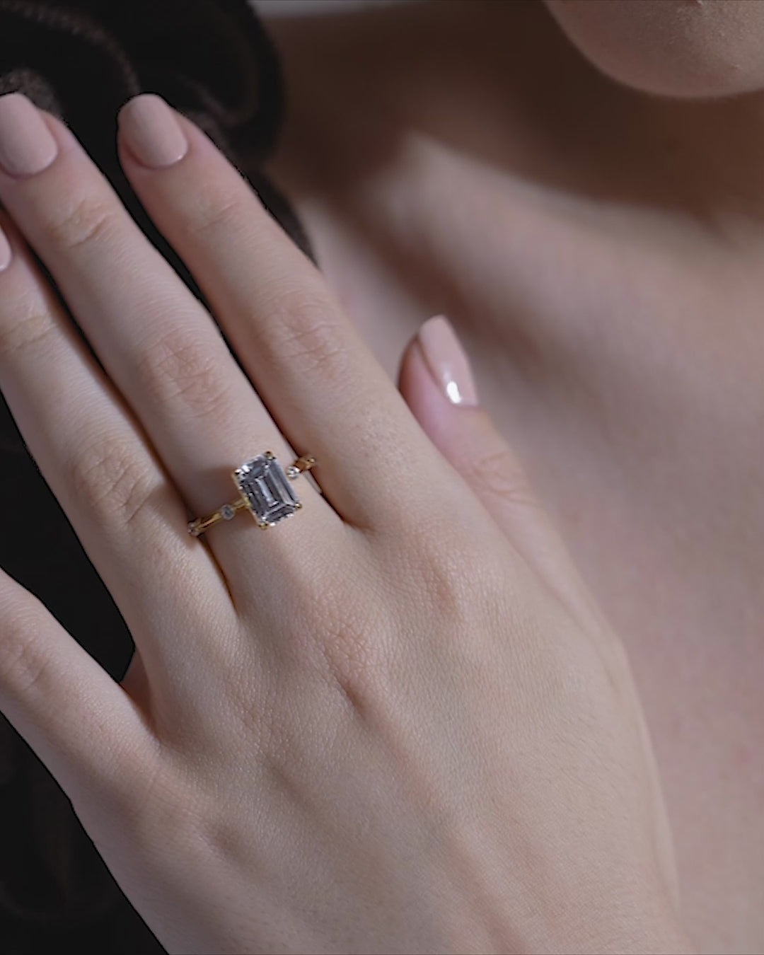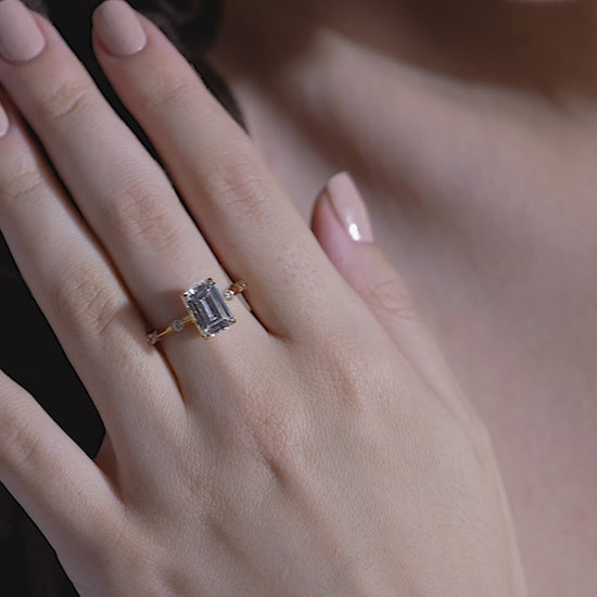 Make a sophisticated statement with this East-West set emerald cut ring, designed for the woman who loves a modern twist on classic elegance. The radiant centerpiece captures the light beautifully, while the band features delicate scattered stones for a subtle sparkle that transitions effortlessly from a boardroom meeting to a dinner date. Crafted in 18K gold vermeil on 925 sterling silver, this anti-tarnish and hypoallergenic piece is safe for sensitive skin, making it a perfect everyday luxury. Whether you are dressing up for a special occasion or adding a touch of glamour to your daily office wear, this lightweight ring sits comfortably on your finger all day long.