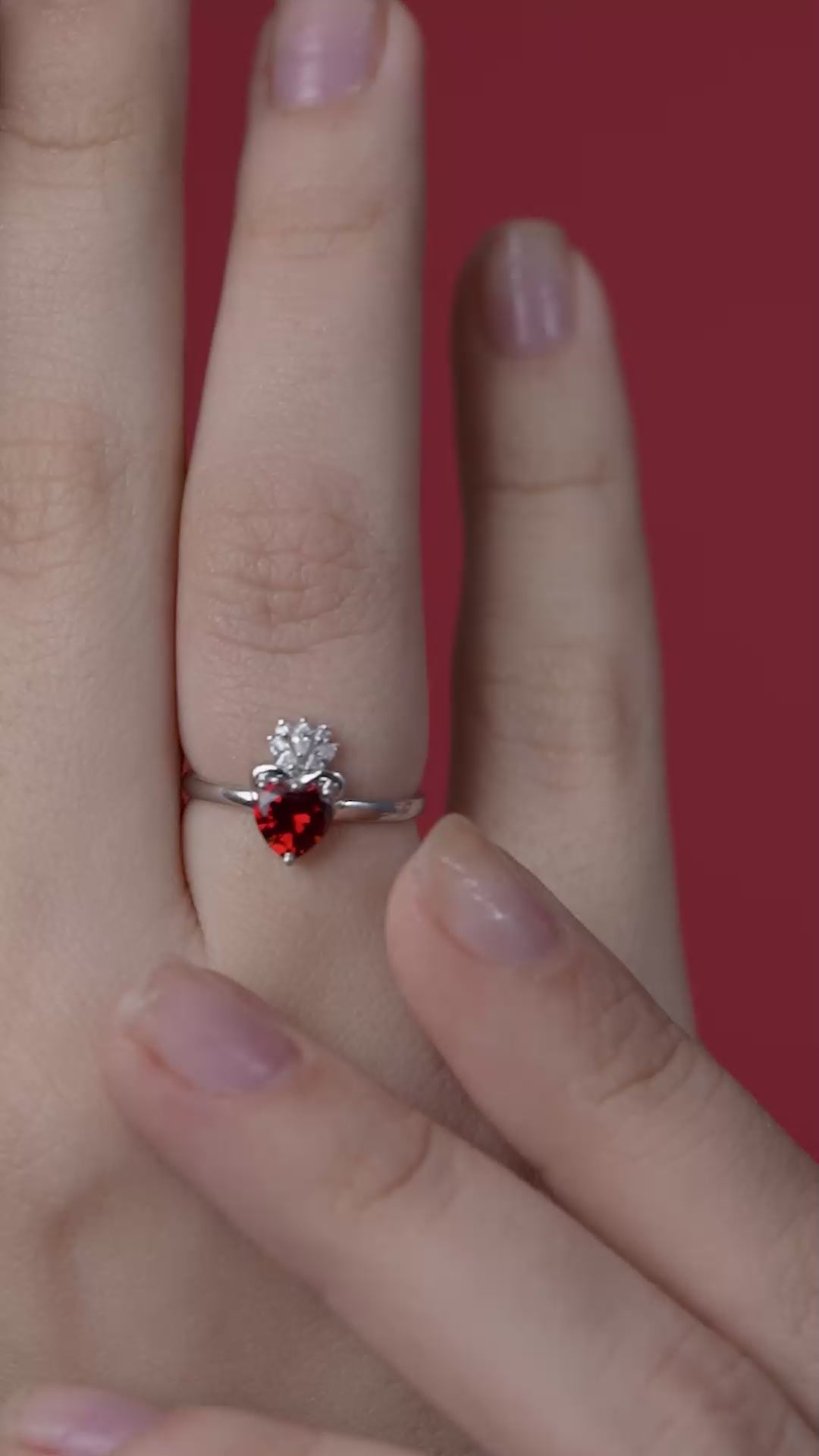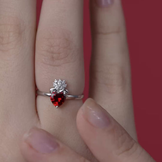 Radiant in gold vermeil, this heart-shaped red gemstone ring crowned with marquise diamonds is pure royal romance.