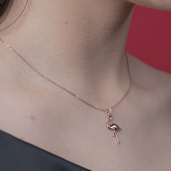 Elegant 18k gold vermeil flamingo pendant necklace featuring a sleek design with a diamond-accented bail.