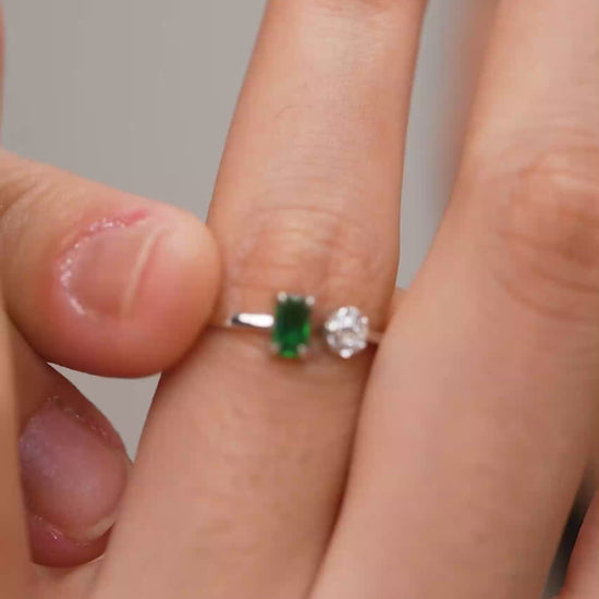 The Geometric Open Ring captures the essence of modern, intentional style for the contemporary Indian woman who appreciates a unique yet minimal design. This adjustable open ring features a striking juxtaposition of shapes: a dazzling round cluster of stones and a sleek, rectangular baguette-cut colored stone, creating an asymmetrical and stylish look that stands out. Designed for all-day comfort and versatility, this piece is ideal for elevating your daily wear, adding a chic touch to office wear, or complementing a stylish evening look. It is made from high-quality 18K gold vermeil on 925 sterling silver, ensuring it is anti tarnish and hypoallergenic, allowing you to wear your everyday gold confidently and comfortably.