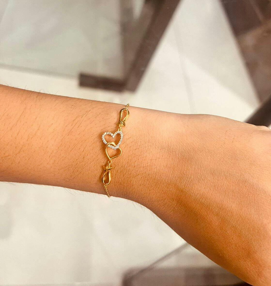 Wear a symbol of connection with this beautifully detailed bracelet. At its heart lie two interlocking shapes—one smooth gold and one paved with shimmering crystals—connected by graceful tulip motifs for a unique, flowy silhouette. Crafted in 18K gold vermeil on 925 sterling silver, it is anti-tarnish and hypoallergenic, making it safe and comfortable for sensitive skin. Lightweight and delicate, this piece adds a subtle romantic glow to your daily office attire or serves as a thoughtful gift for someone special.
