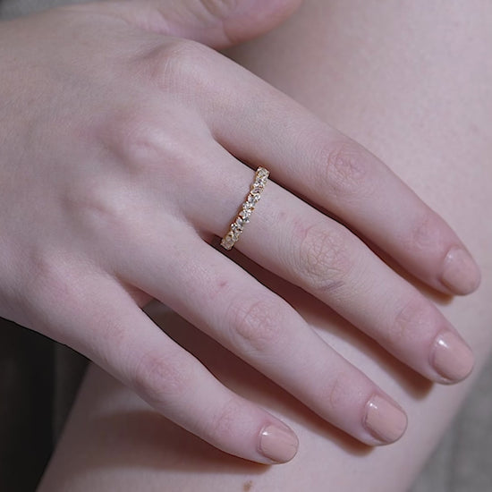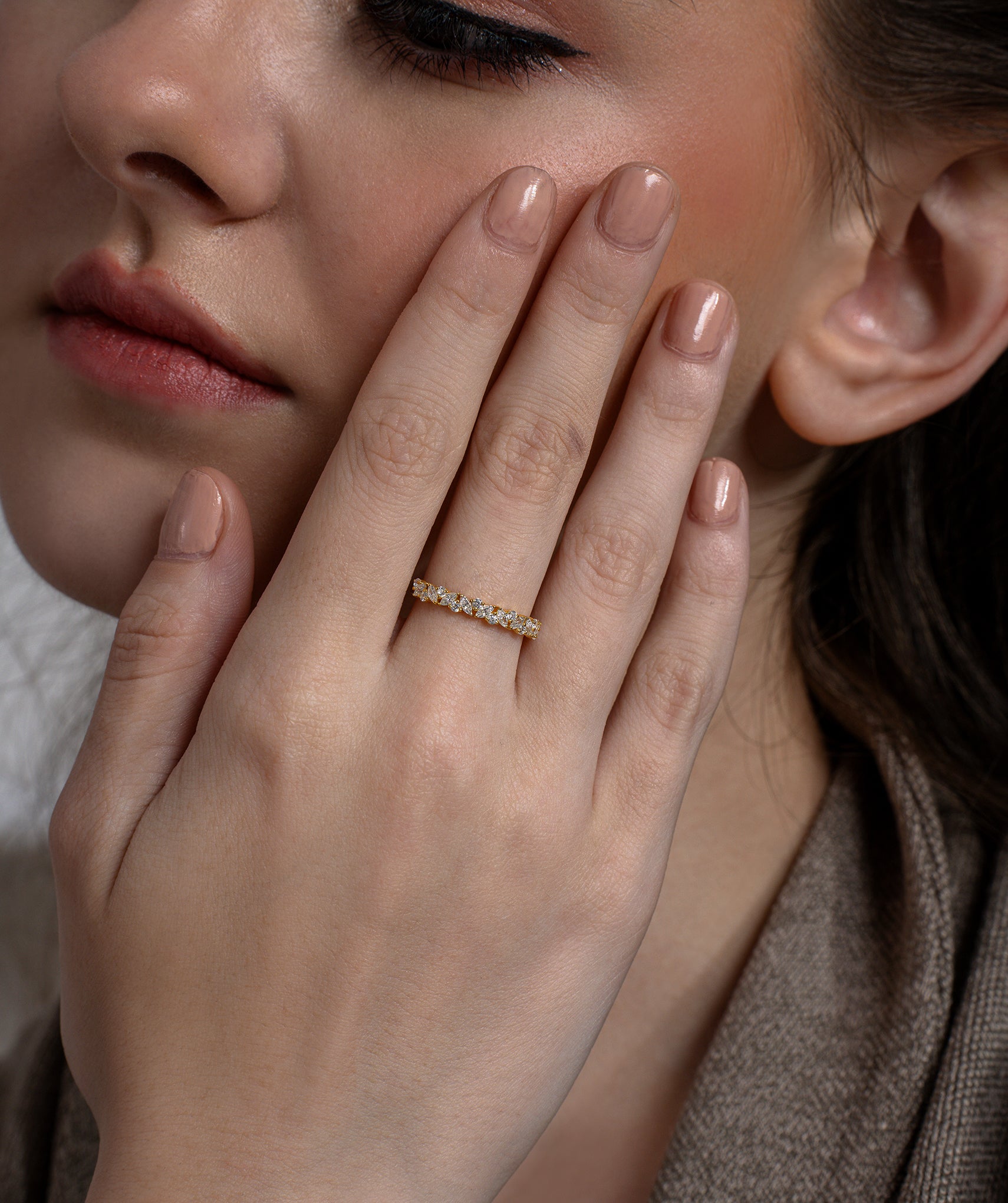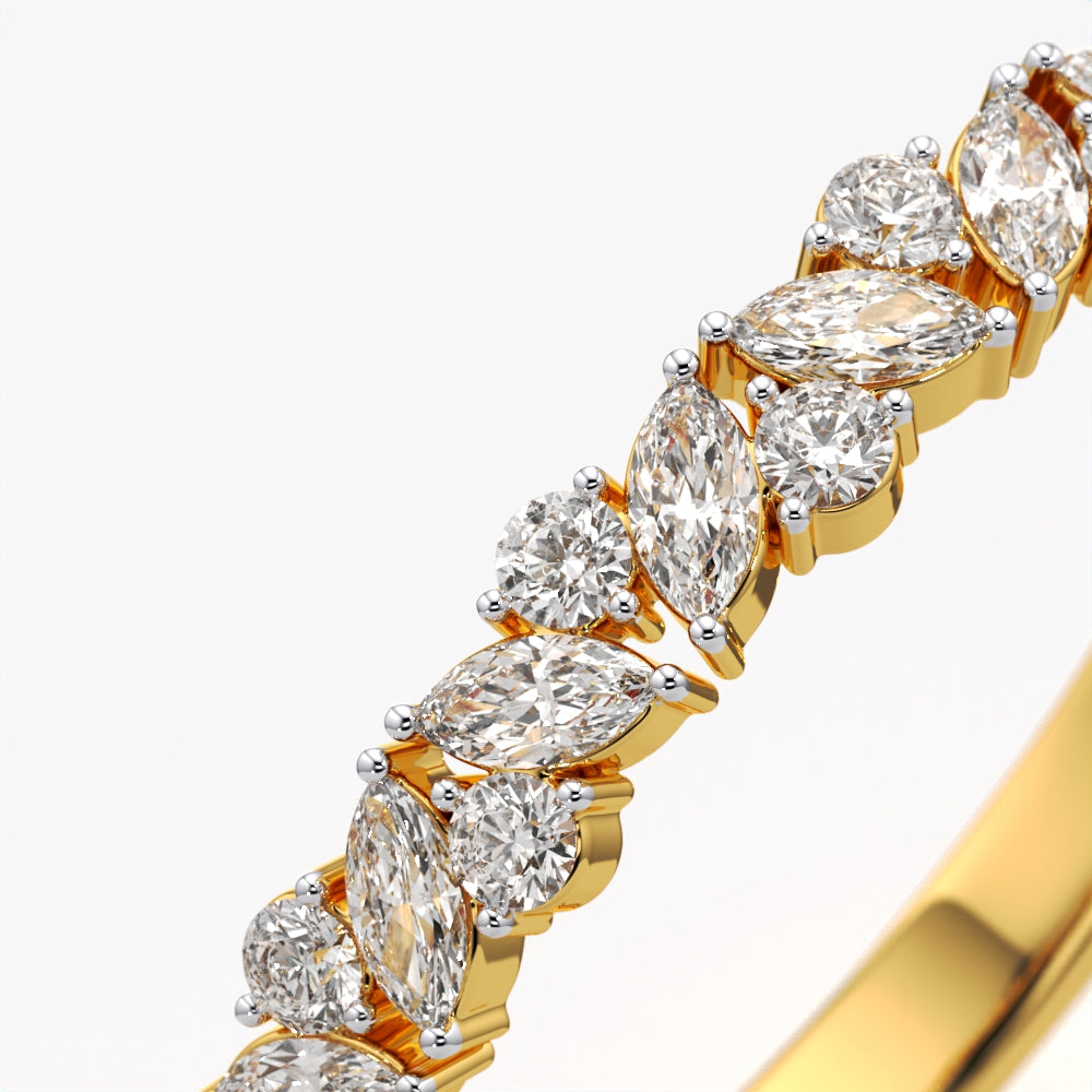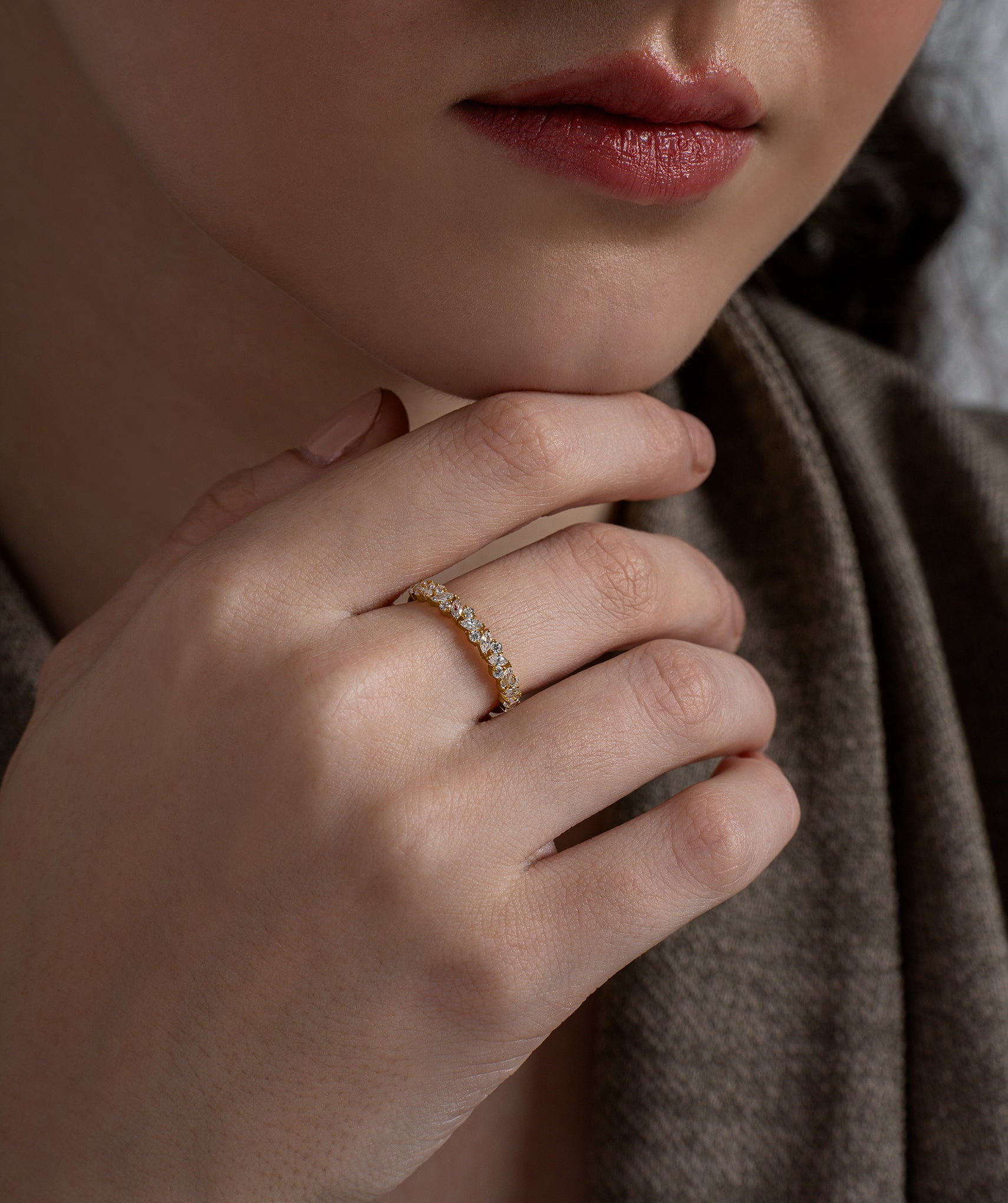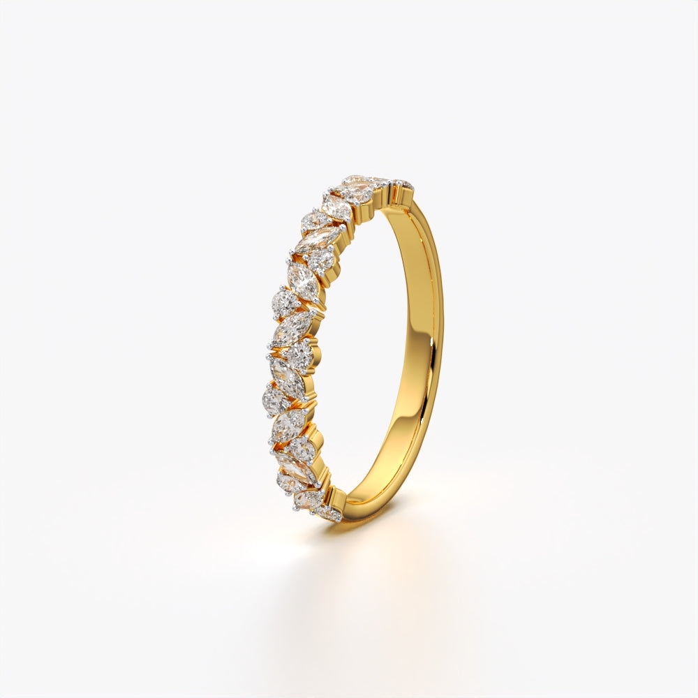 Adorn your fingers with the organic beauty of this Marquise Vine Band, a romantic and intentional addition to the modern Indian woman's everyday gold collection. This exquisite ring features a rhythmic pattern of alternating marquise and round stones, creating a delicate, vine-like silhouette that wraps gracefully around the finger. Crafted from high-quality 18K gold vermeil on 925 sterling silver, it is reliably anti tarnish and hypoallergenic, ensuring a comfortable and skin-friendly fit for continuous wear. Whether worn alone as a delicate statement or stacked with a solitaire to add texture, this ring brings a soft, nature-inspired elegance to office wear and date nights alike.
