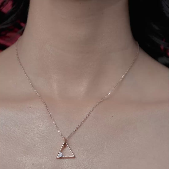 Sharpen your style with the crisp, modern angles of this geometric pendant. The design features a sleek open triangle outline in polished gold, accented by a single, smaller sparkling triangle nestled in one corner for an unexpected touch of shine. Crafted in 18K gold vermeil on 925 sterling silver, it is anti-tarnish and hypoallergenic, making it perfect for daily wear on sensitive skin. A subtle yet striking choice for the modern Indian woman, this lightweight necklace adds a contemporary edge to office blazers or casual weekend wear.