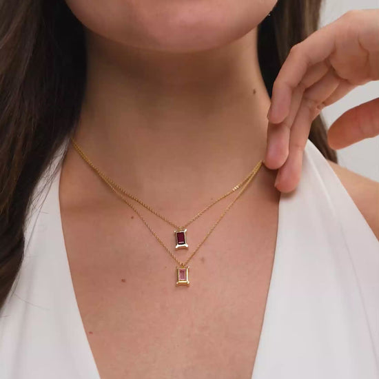 Infuse your look with the rich sophistication of deep green. This minimalist necklace features a stunning horizontal baguette-cut stone set in a sleek gold frame, allowing the stone's vivid colour and clean lines to take center stage. Crafted in 18K gold vermeil on 925 sterling silver, it is anti-tarnish and hypoallergenic, ensuring comfortable all-day wear on sensitive skin. A chic and contemporary choice for the modern Indian woman, this lightweight piece is perfect for adding a subtle yet powerful statement to office attire or evening events.