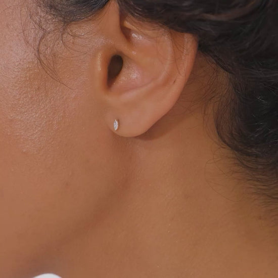Embrace the elegance of simplicity with these stunning solitaire studs. The design highlights a single, brilliant marquise-cut stone set vertically, offering a chic and elongating silhouette that stands out from the usual round studs. Crafted in 18K gold vermeil on 925 sterling silver, they are anti-tarnish and hypoallergenic, making them perfect for sensitive ears or second piercings. Ideal for the modern Indian woman, these lightweight earrings add a refined sparkle to your daily office attire or act as a delicate finishing touch for a casual weekend look.