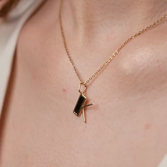 Wear your identity with confidence using this sleek and personalized pendant. The design showcases a contemporary letter 'K' highlighted by a striking black enamel inlay that contrasts beautifully with the gold finish. Crafted in 18K gold vermeil on 925 sterling silver, it is anti-tarnish and hypoallergenic, ensuring it remains gentle on sensitive skin. A thoughtful gift for yourself or a loved one, this lightweight necklace is perfect for the modern Indian woman, adding a custom touch to everything from daily kurtas to western office wear.