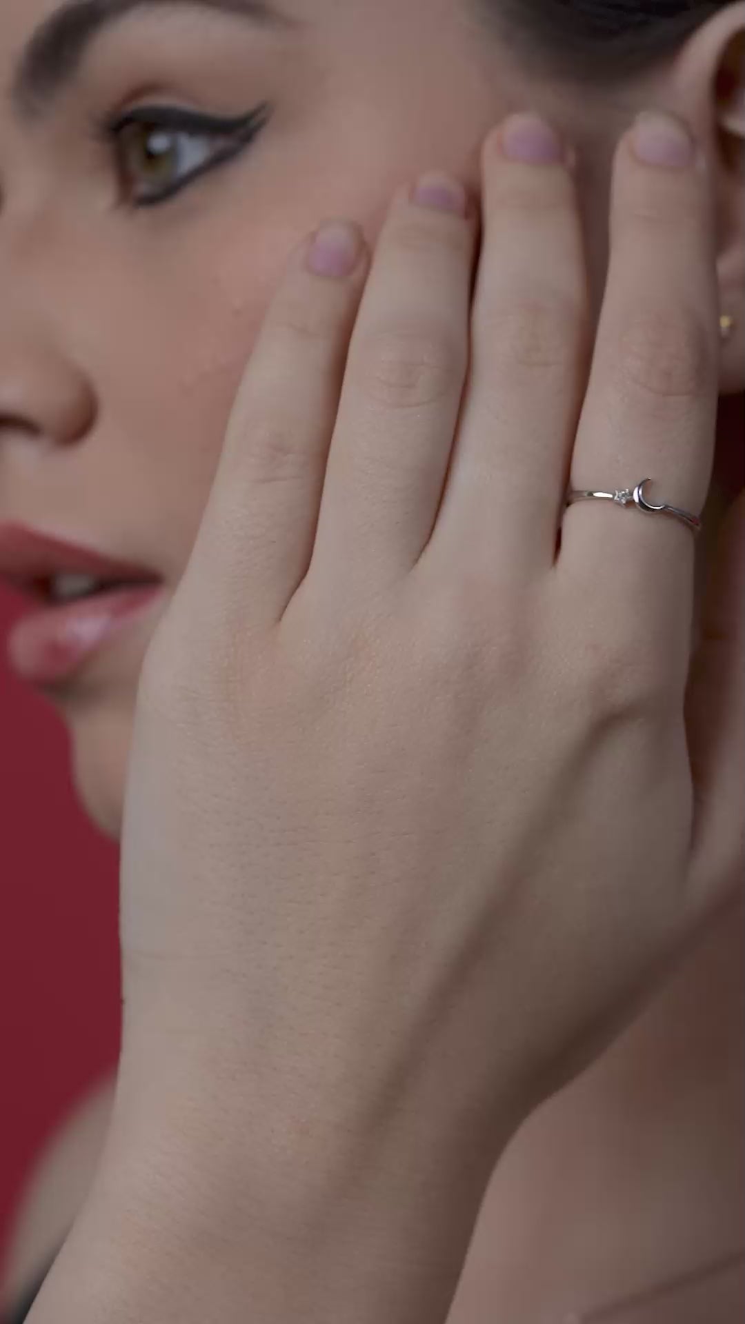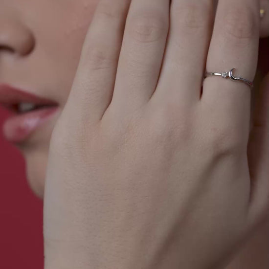 Dainty crescent moon and star ring with a sparkling diamond accent—celestial elegance in a minimalist design.