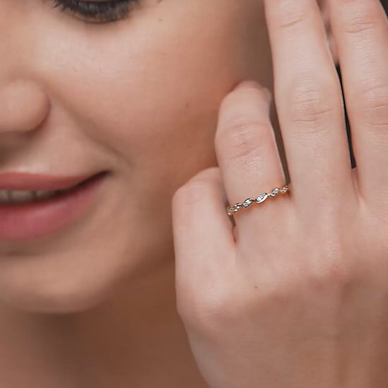 Embrace timeless minimalism with this delicate oval petal band, a versatile piece that shines whether worn solo or as part of a curated stack. The design features a continuous row of bezel-set stones in a soft, scalloped arrangement that feels both classic and modern. Crafted in 18K gold vermeil on 925 sterling silver, this ring is anti-tarnish and hypoallergenic, making it a reliable choice for long hours at the office or weekend outings. Its sleek, lightweight profile is tailored for the everyday woman in India looking for high-quality, skin-safe jewellery that complements any outfit with a subtle, polished glow.