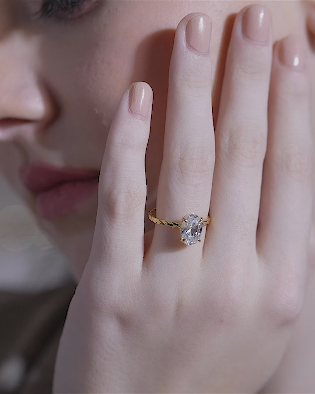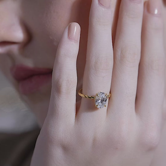 Elevate your daily style with the timeless charm of this Oval Rope Solitaire Ring, a perfect piece of intentional everyday gold for the modern Indian woman. This elegant design features a brilliant oval-cut stone secured on a classic twisted rope band, adding a sophisticated textural element to a traditional silhouette. Crafted from high-quality 18K gold vermeil on 925 sterling silver, it is reliably anti tarnish and hypoallergenic, ensuring a comfortable and skin-friendly fit for long-term wear. Whether paired with office wear for a polished look or worn as a chic statement for date nights, this ring brings a touch of vintage-inspired luxury to your modern lifestyle.