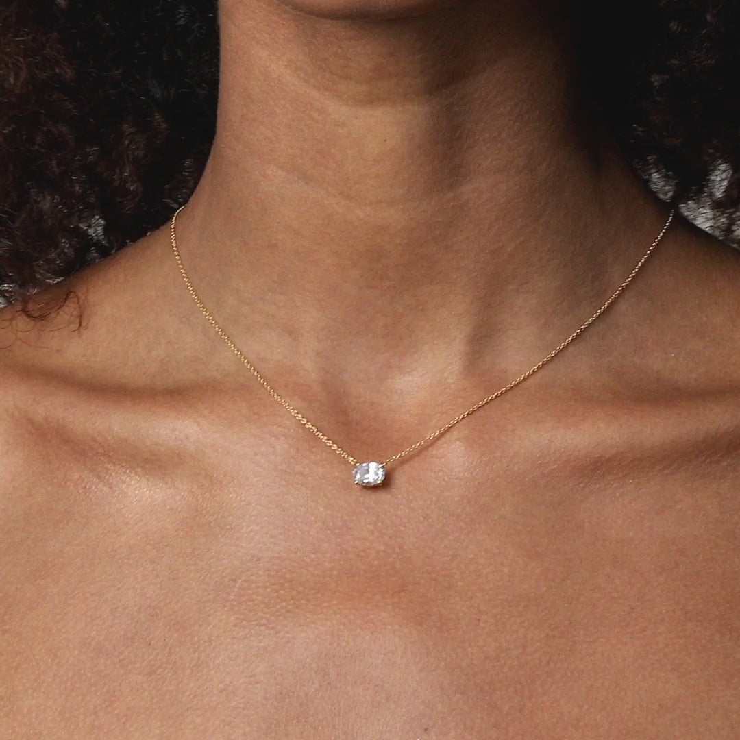 Elevate your everyday neckline with a touch of timeless brilliance and a modern silhouette. This Oval Solitaire Pendant features a horizontally set, brilliant oval stone that offers a fresh take on the classic solitaire look. Crafted in 18K gold vermeil on 925 sterling silver, the piece is anti-tarnish and hypoallergenic, making it a skin-safe and durable staple for modern Indian women. Its minimal design and lightweight feel make it ideal for long hours at the office or adding an intentional glow to a casual weekend brunch. Whether worn alone for a clean aesthetic or layered with other gold chains, this necklace is designed to be a versatile and elegant companion for any occasion.