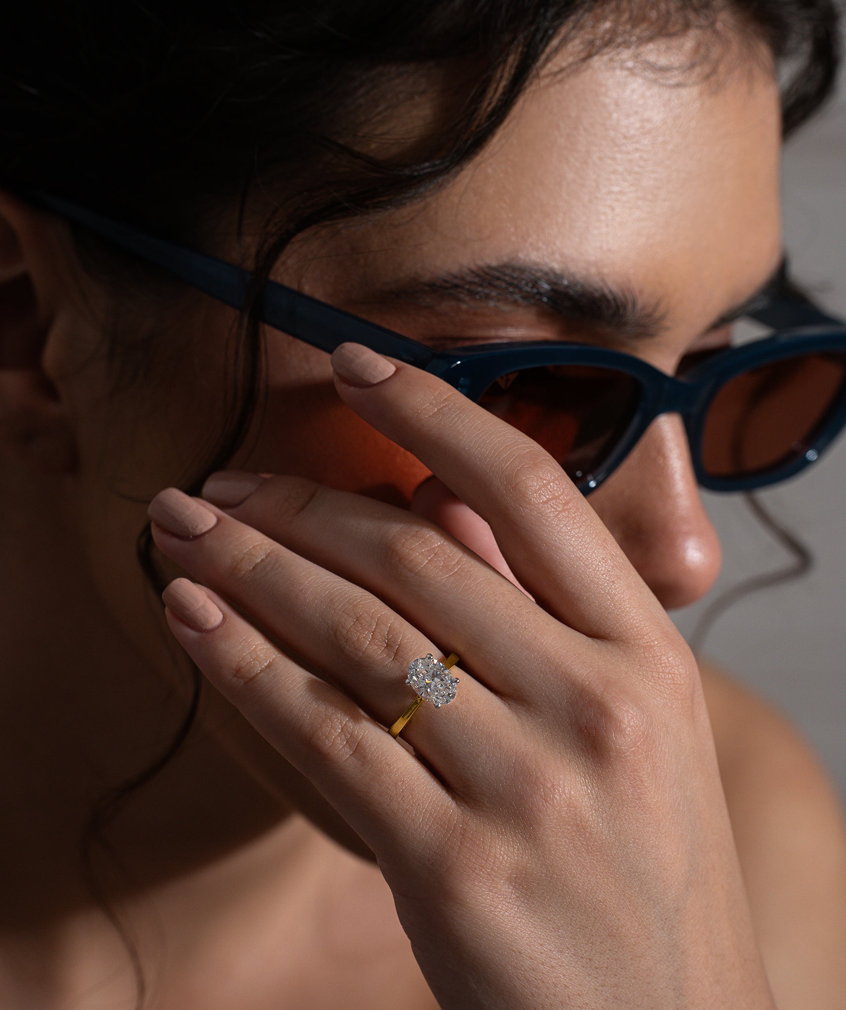 This elegant oval solitaire ring is a timeless choice for modern Indian women who appreciate understated luxury. Featuring a brilliant, horizontally-set oval stone on a sleek band, the design offers a contemporary twist on a classic silhouette, making it perfect for office wear or daily styling. Crafted in 18K gold vermeil on 925 sterling silver, the piece is both anti-tarnish and hypoallergenic, ensuring it remains gentle on sensitive skin even with 24/7 wear. Lightweight and effortless, this minimal gold ring adds a refined glow to your look, whether you’re heading to a brunch date or a high-stakes meeting.