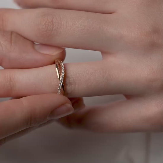 Embrace effortless elegance with this sleek Pavé Crisscross Ring, the perfect piece of intentional, everyday gold for the modern Indian woman. This ring features two polished bands that gracefully cross over each other, with one band shimmering with a line of delicate pavé-set stones, creating a fluid, modern, and highly wearable twist design. Crafted from high-quality 18K gold vermeil on 925 sterling silver, it is reliably anti tarnish and hypoallergenic, ensuring a comfortable and skin-friendly fit for continuous wear. This chic and lightweight design is ideal for daily wear, adding a sophisticated, polished touch to office wear, or a subtle sparkle for evening parties and date nights, seamlessly fitting into a calm and modern lifestyle.