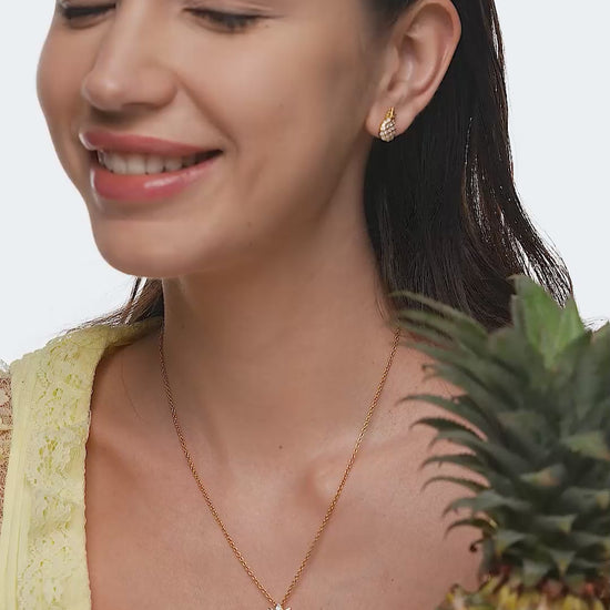 Bring a touch of tropical luxury to your daily attire with this Pavé Leaf Pineapple Necklace, a perfect blend of whimsical charm and modern sophistication. This piece features a beautifully textured golden pineapple body crowned with shimmering pavé-set leaves that catch the light with every movement. Crafted in 18K gold vermeil on 925 sterling silver, it is anti-tarnish and hypoallergenic, making it a safe and comfortable choice for modern Indian women with sensitive skin. Whether you are heading to a morning meeting or a weekend brunch, its lightweight design and polished finish offer an effortless, modern feminine glow that stays comfortable all day long.