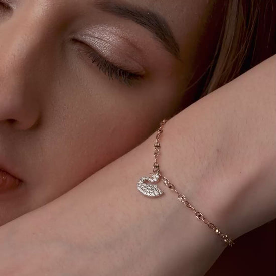 Charming 18k gold vermeil bracelet featuring a delicate textured chain and a crescent moon charm adorned with sparkling cubic zirconia.