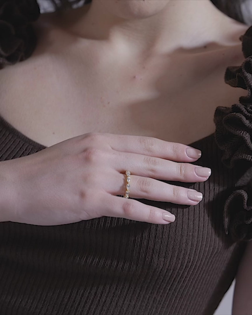 Elevate your everyday stacking game with this versatile duo of eternity bands, designed to be worn together or as standalone pieces. This set features two distinct rings—one adorned with elegant pear-cut stones and the other with shimmering oval accents—offering a sophisticated variety for your jewellery collection. Crafted in 18K gold vermeil on 925 sterling silver, these bands are anti-tarnish and hypoallergenic, making them an ideal choice for modern Indian women with sensitive skin. Whether you are looking for minimal gold rings for daily wear or a refined touch for office outfits, their lightweight and comfortable design ensures they feel as good as they look.