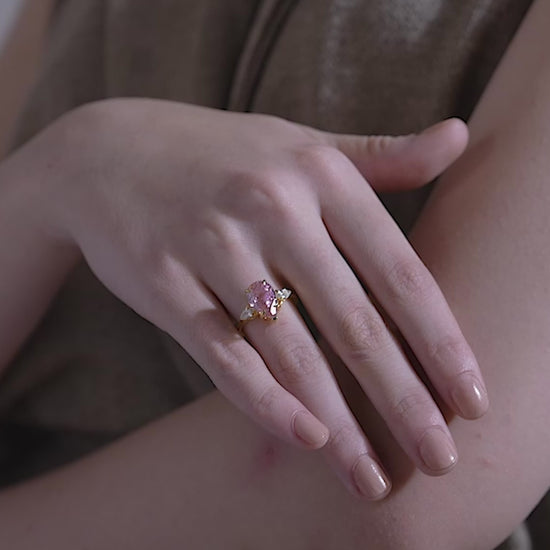 Infuse your everyday style with a blush of romance using this captivating ring, featuring a vibrant pink pear-cut stone nestled between two sparkling clear accents. The classic three-stone design creates a harmonious balance of color and brilliance, making it a delightful choice for brunch dates or festive family gatherings. Crafted in 18K gold vermeil on 925 sterling silver, this anti-tarnish and hypoallergenic piece ensures you can wear your pop of color comfortably without worrying about sensitive skin. Whether you are looking to brighten up your office attire or find the perfect gift for a loved one, this lightweight ring offers a modern, feminine touch that stands out.