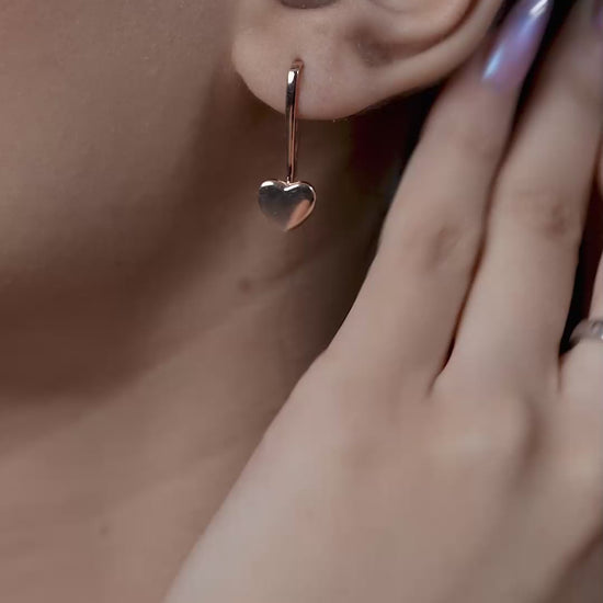 Fall for the understated elegance of these sleek drop earrings. Featuring a long, curved wire that seamlessly transitions into a smooth, high-polish heart, this design offers a refined and elongated silhouette that flatters every face shape. Crafted in 18K gold vermeil on 925 sterling silver, this pair is anti-tarnish and hypoallergenic, making it a gentle and reliable choice for sensitive ears. Lightweight and effortlessly chic, they are the perfect accessory for the modern Indian woman, transitioning smoothly from a busy workday to a relaxed evening dinner.