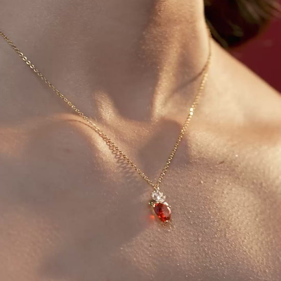 This 18k gold vermeil heart pendant necklace features a brilliant red diamond heart, crowned with sparkling diamond accents, symbolizing love and elegance.