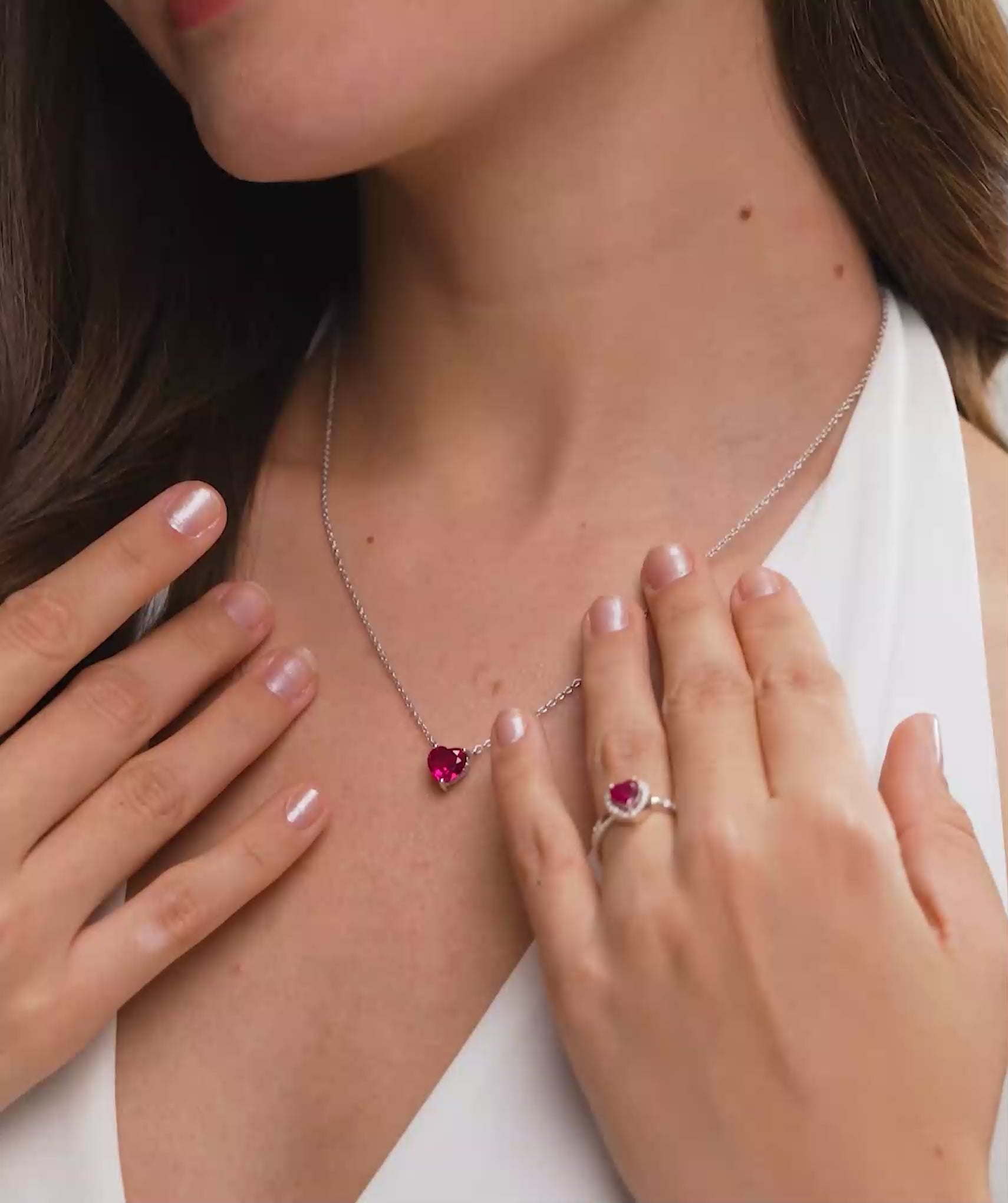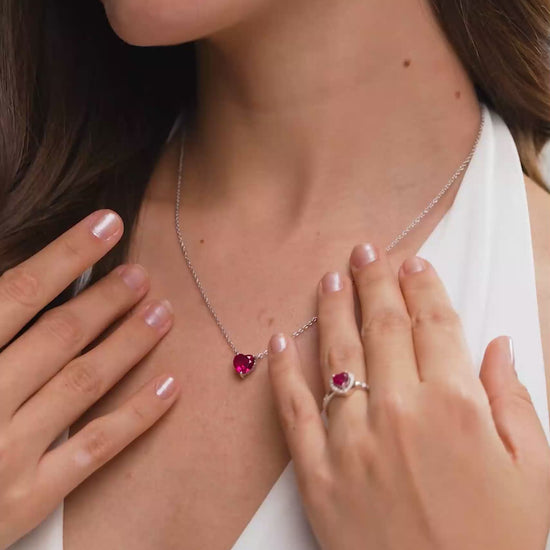 Necklace & studs with radiant red heart stones in 18K gold vermeil—bold, timeless, and full of love.