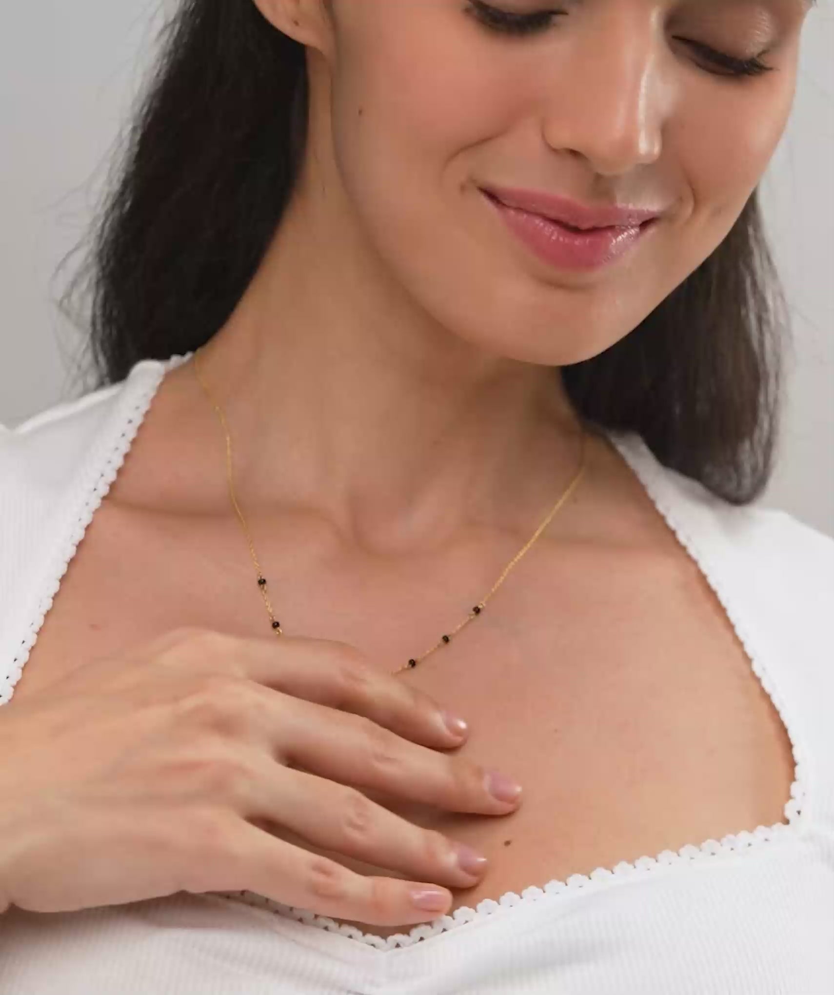 A timeless 18k gold vermeil mangalsutra featuring an intricate diamond-studded design, blending tradition with contemporary elegance for the modern bride.