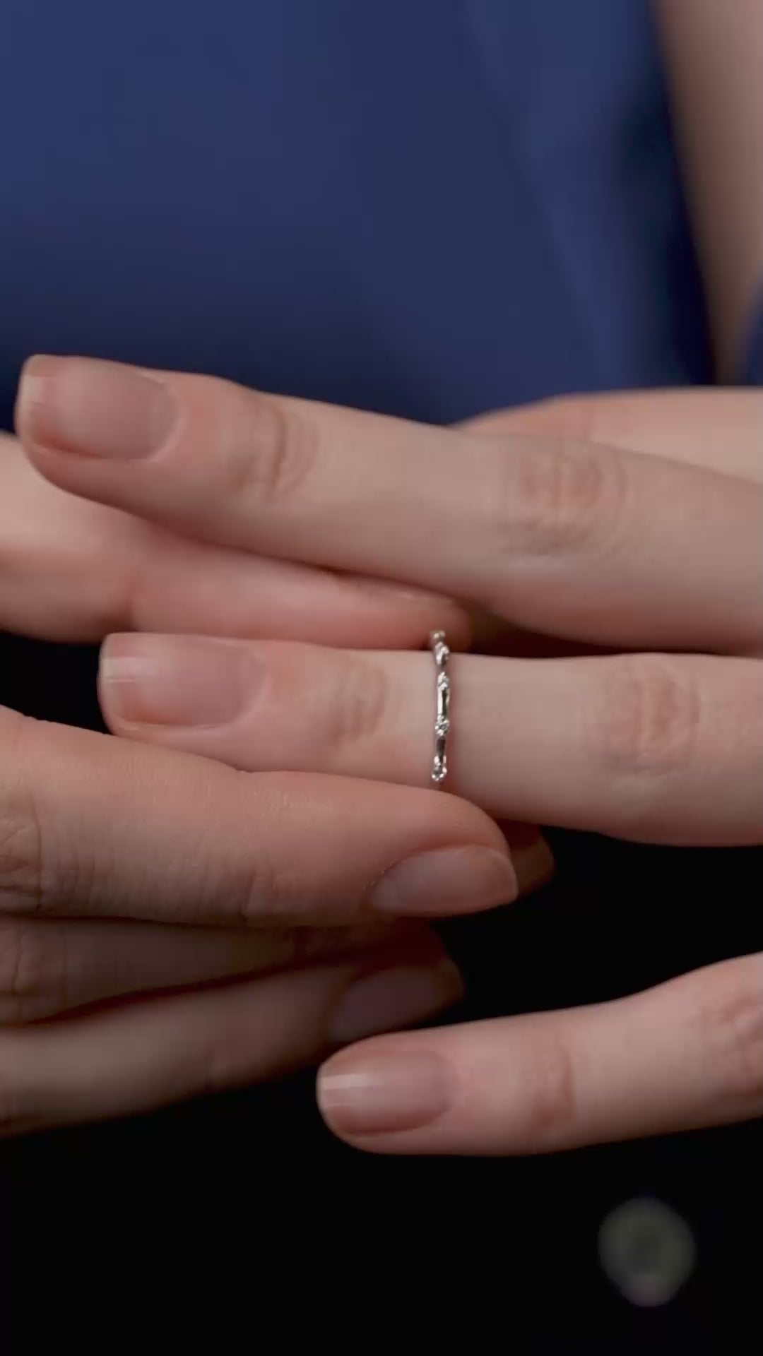Discover the beauty of delicate minimalism with this Spaced Station Band, an essential piece of everyday gold for the modern Indian woman who loves airy, stackable designs. This slender ring features brilliant round stones set at even intervals along the band, creating a "floating" look that adds a touch of light and negative space to your finger. Crafted from high-quality 18K gold vermeil on 925 sterling silver, it is reliably anti-tarnish and hypoallergenic, ensuring a comfortable, barely-there feel for all-day wear. This ultra-lightweight piece is the ultimate stacking champion, perfect for adding texture to your daily wear, a subtle sparkle to office wear, or pairing with other bands for a customised look.