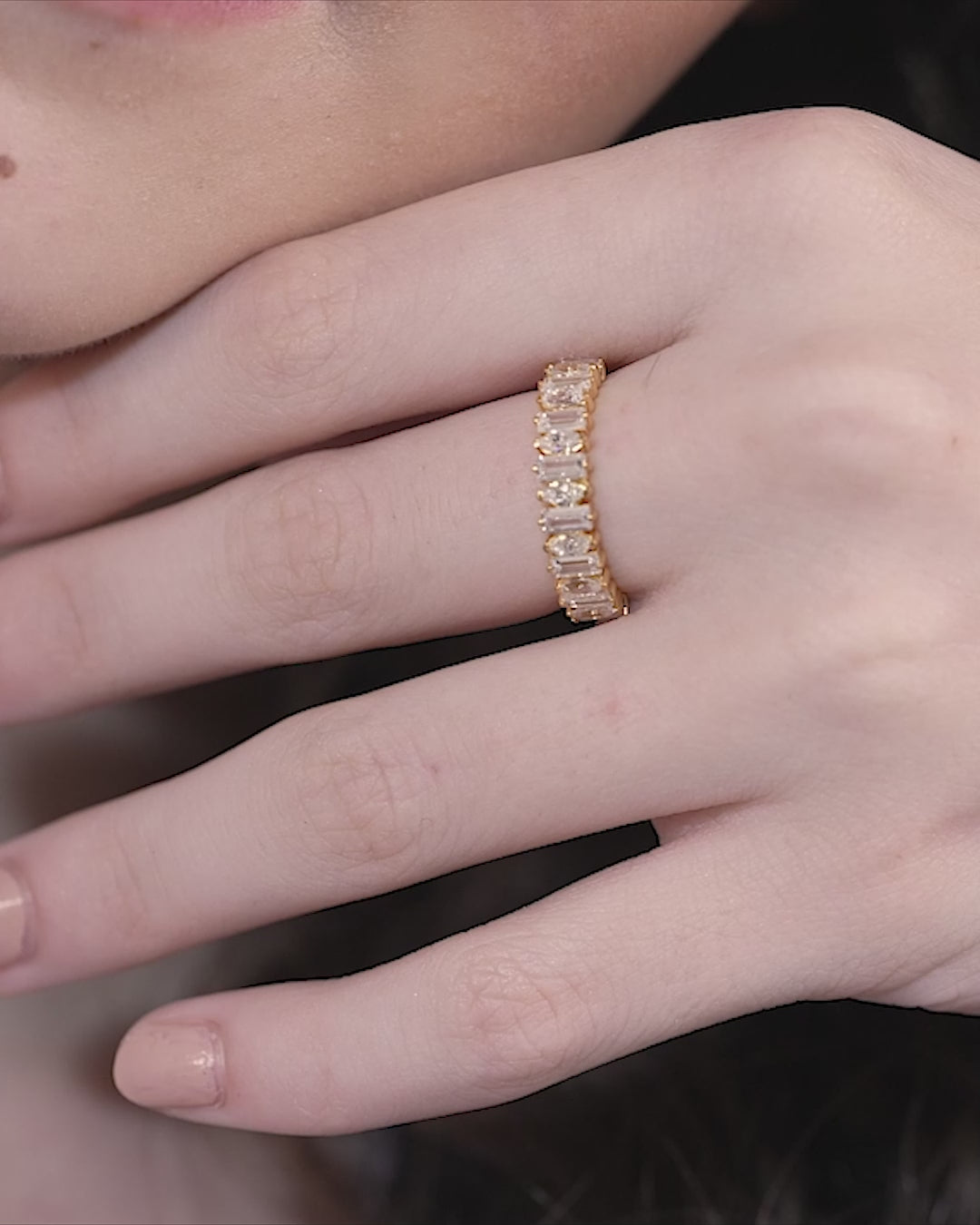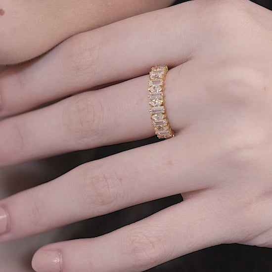 Elevate your commitment with this stunning baguette and marquise stone wedding band, offering a sophisticated and contemporary take on classic bridal jewellery. This ring features a beautiful, alternating pattern of elegant cuts that provide maximum sparkle, making it a stylish choice for a modern, everyday woman in India. Crafted meticulously in premium 18K gold vermeil on 925 sterling silver, this piece is completely anti-tarnish and hypoallergenic, ensuring exceptional comfort and safety for sensitive skin when worn daily. Whether used as a wedding band, an anniversary gift, or a stackable ring, this lightweight and elegant design maintains the golden glow without requiring constant maintenance.