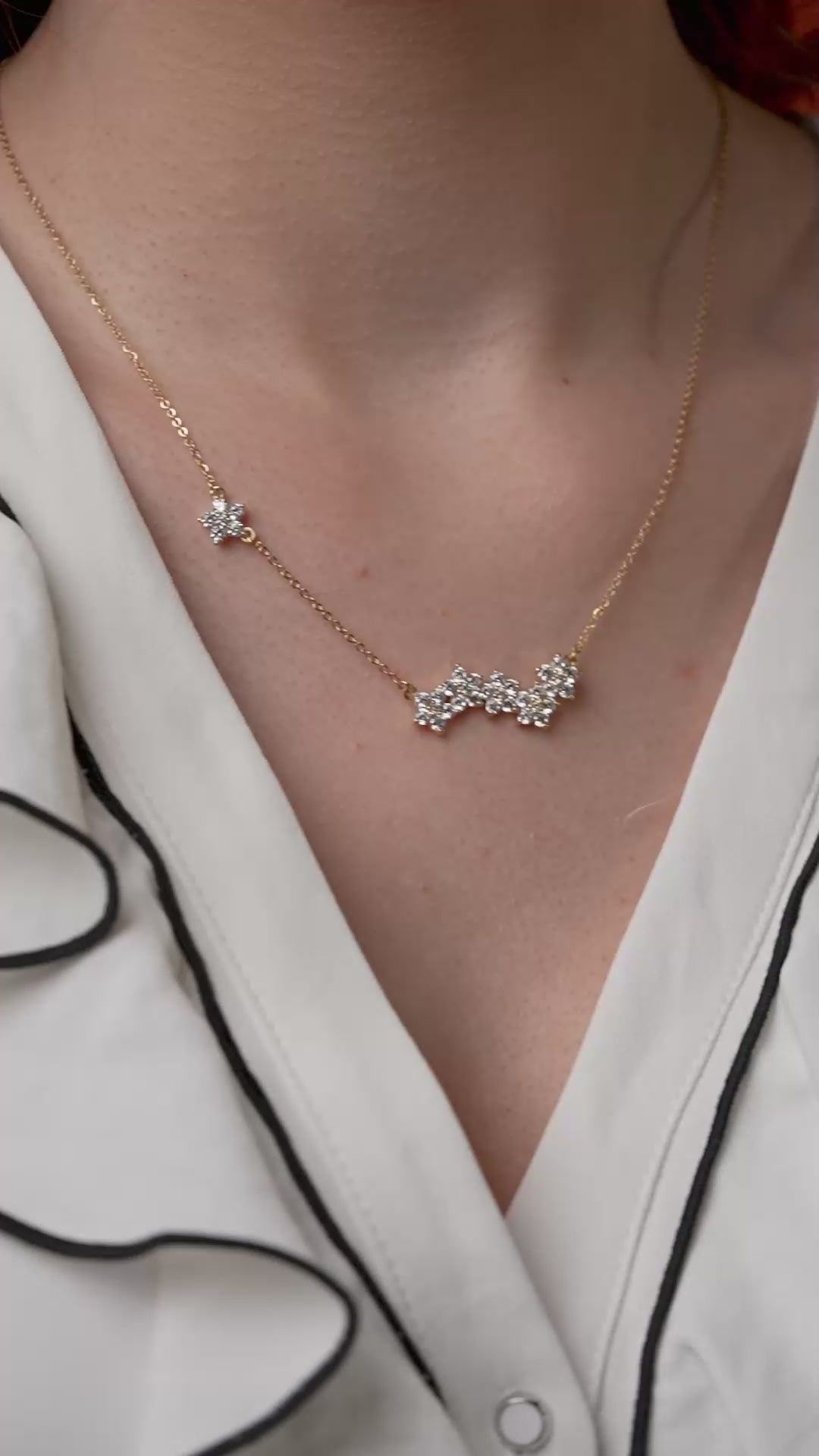 18k Gold Vermeil constellation necklace featuring a cluster of sparkling diamond-studded stars for a celestial touch.