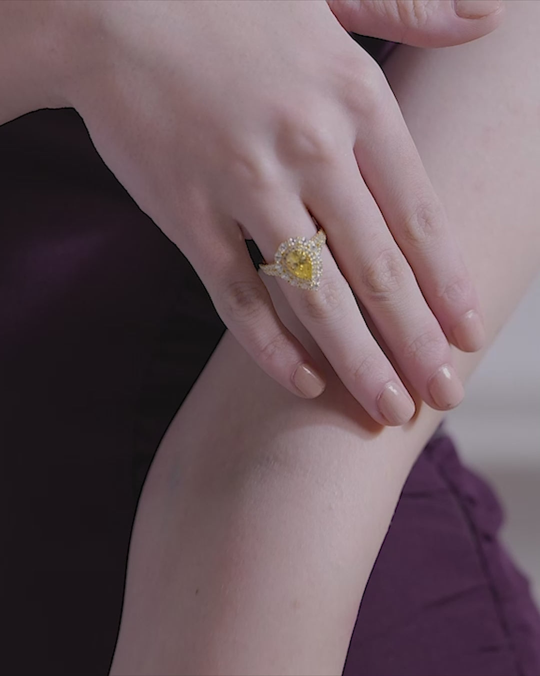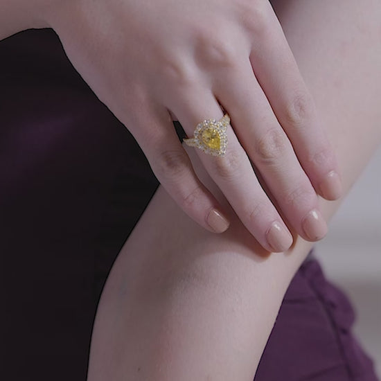 Capture the spotlight with this breathtaking Statement Yellow Pear Ring, a masterpiece of intentional glamour for the modern Indian woman who loves to stand out. The design centers on a magnificent, vibrant yellow pear-cut stone, encircled by a lavish double halo of sparkling white stones that amplify its brilliance. The luxury continues with a bold split-shank band, densely set with three rows of pavé accents, creating a wide, glittering presence on the finger. Crafted in high-quality 18K gold vermeil on 925 sterling silver, this ring is reliably anti tarnish and hypoallergenic. It is the ultimate cocktail piece, perfect for weddings, grand parties, or adding a touch of royalty to a special evening ensemble.