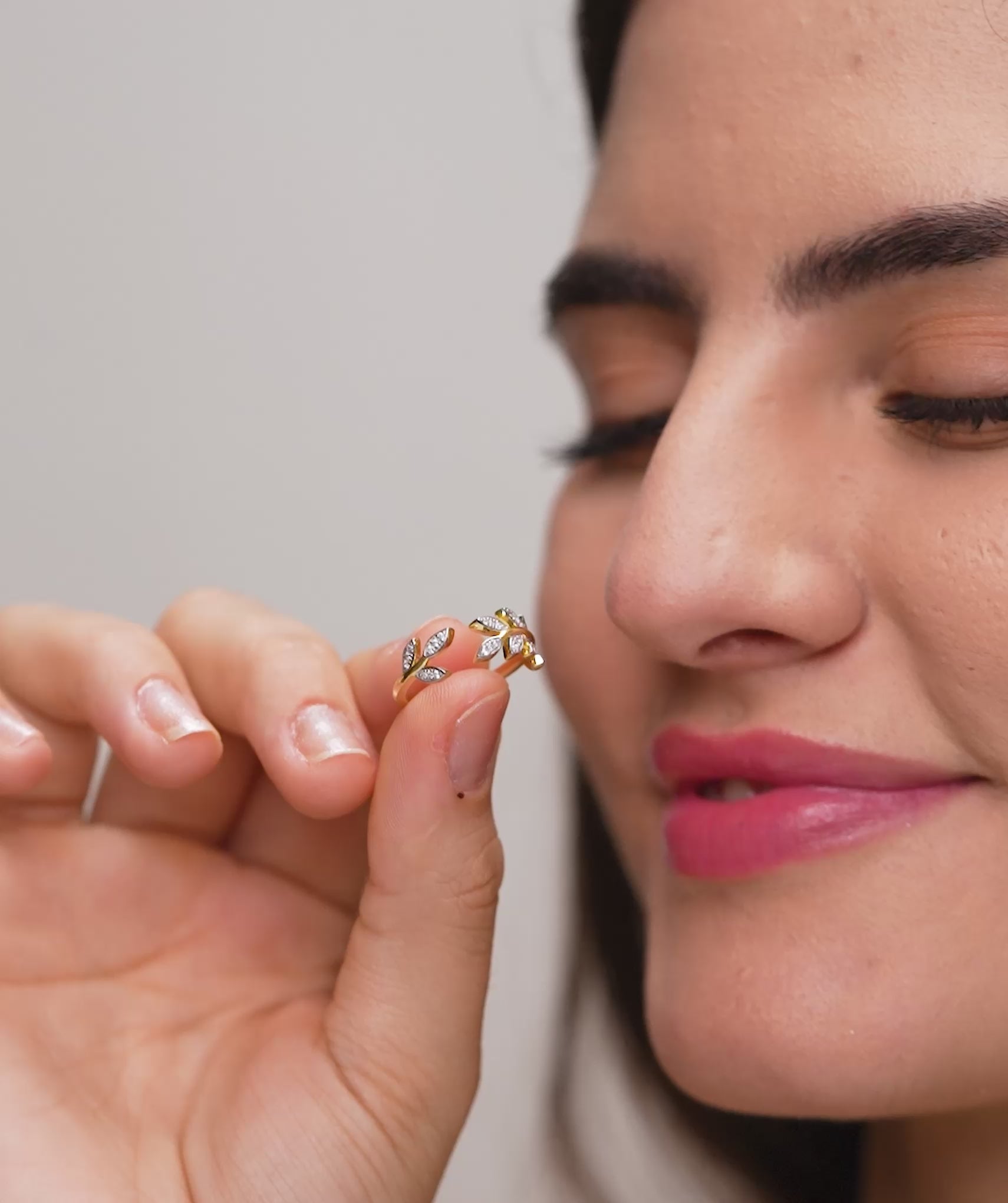 A stylish rose gold-plated 18k gold vermeil ring with a diamond-studded chain-link design, blending elegance with modern edge.