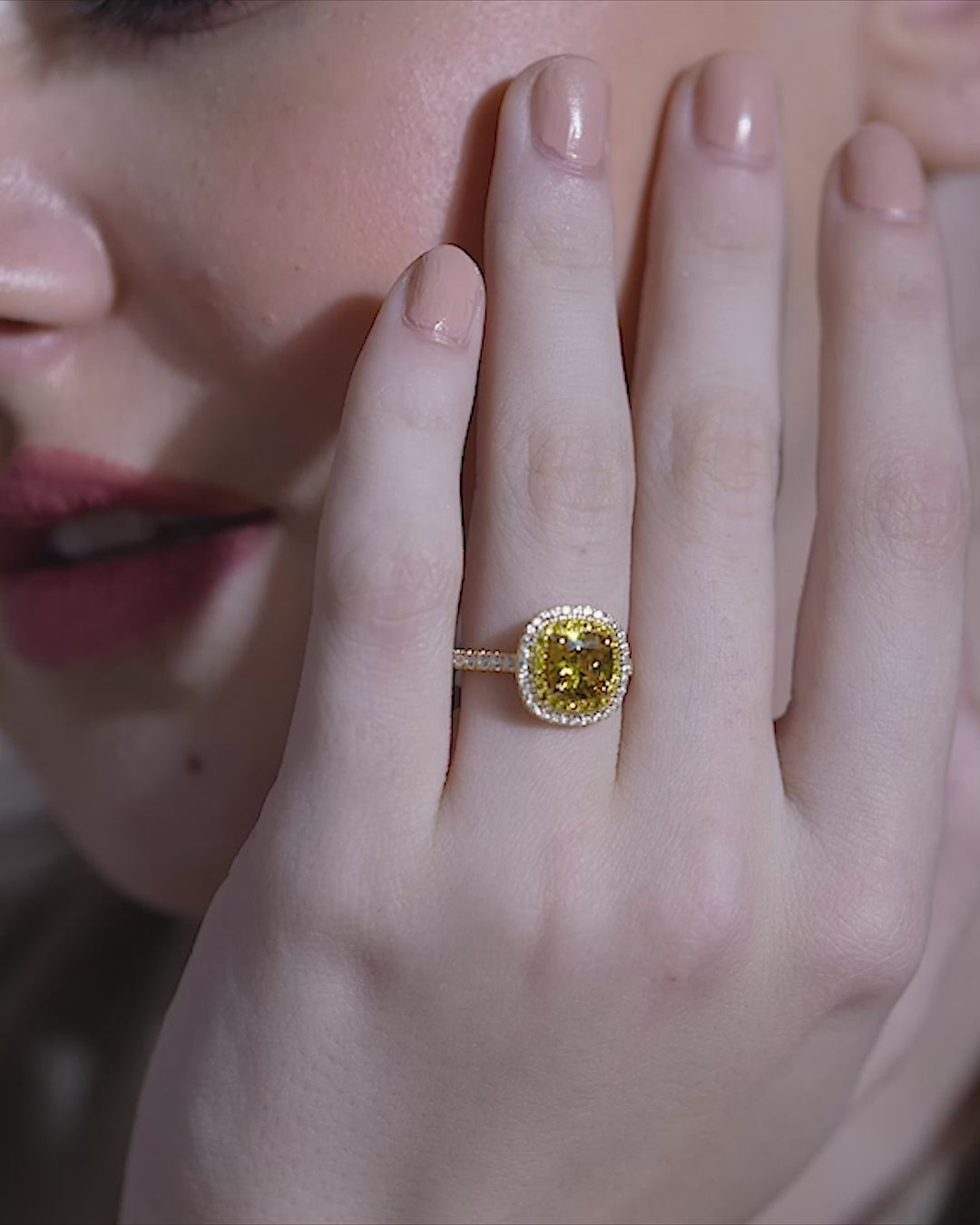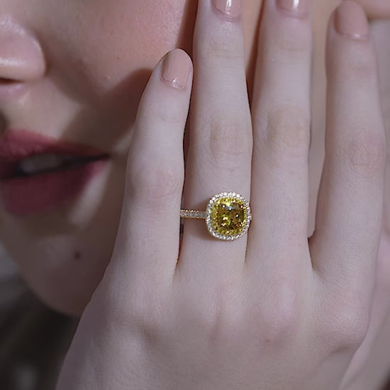 Brighten up your jewelry box with this radiant Yellow Double Halo Ring, a joyful piece of everyday gold designed for the vibrant Indian woman. This stunning ring features a cushion-cut yellow center stone surrounded by a unique double halo—an inner row of yellow accents and an outer frame of sparkling white stones—creating a seamless, sun-kissed glow on a pavé band. Crafted in high-quality 18K gold vermeil on 925 sterling silver, it is reliably anti tarnish and hypoallergenic, ensuring a comfortable and skin-friendly fit for long-term wear. Whether pairing it with a festive outfit, a cocktail dress, or adding a confident pop of color to neutral office wear, this ring is a happy, stylish statement.